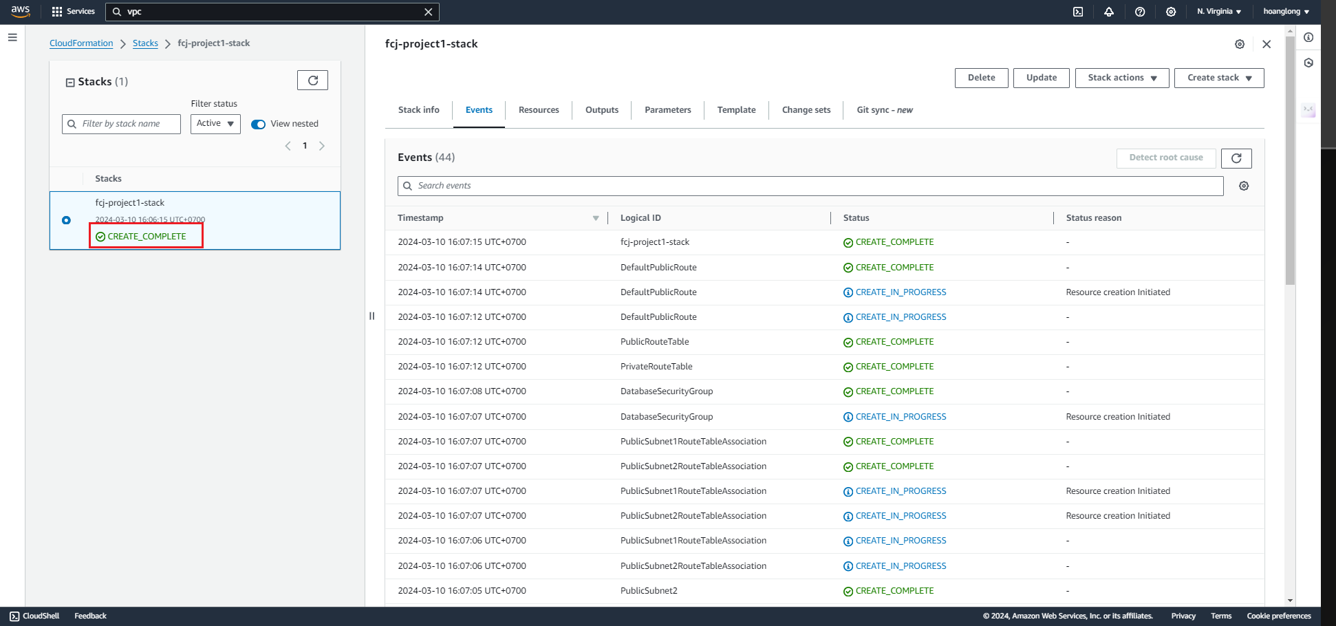 - Wait for the stack to build out. Refresh until status becomes “CREATE_COMPLETE”