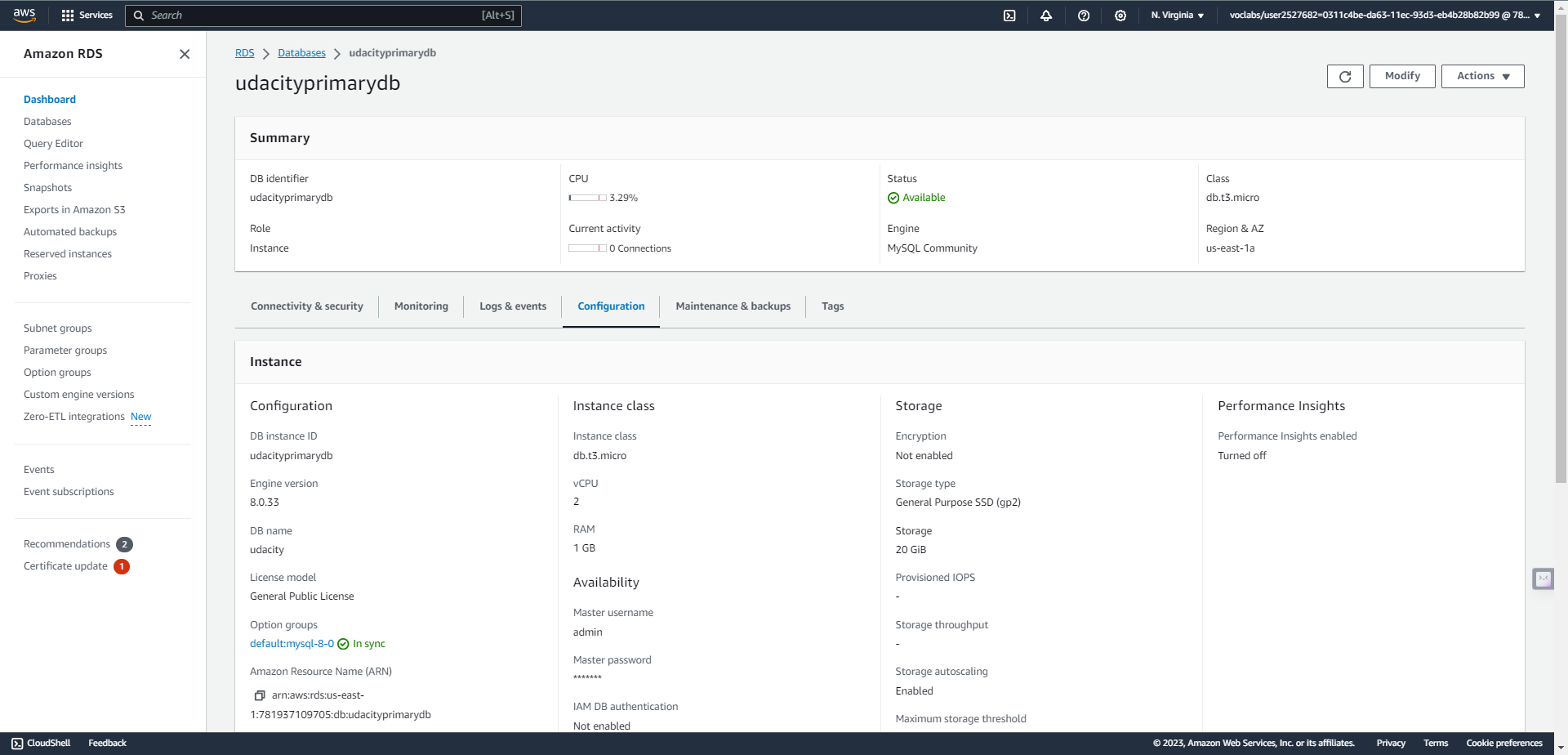- Create a new MySQL, multi-AZ database in the active region. The database must:
