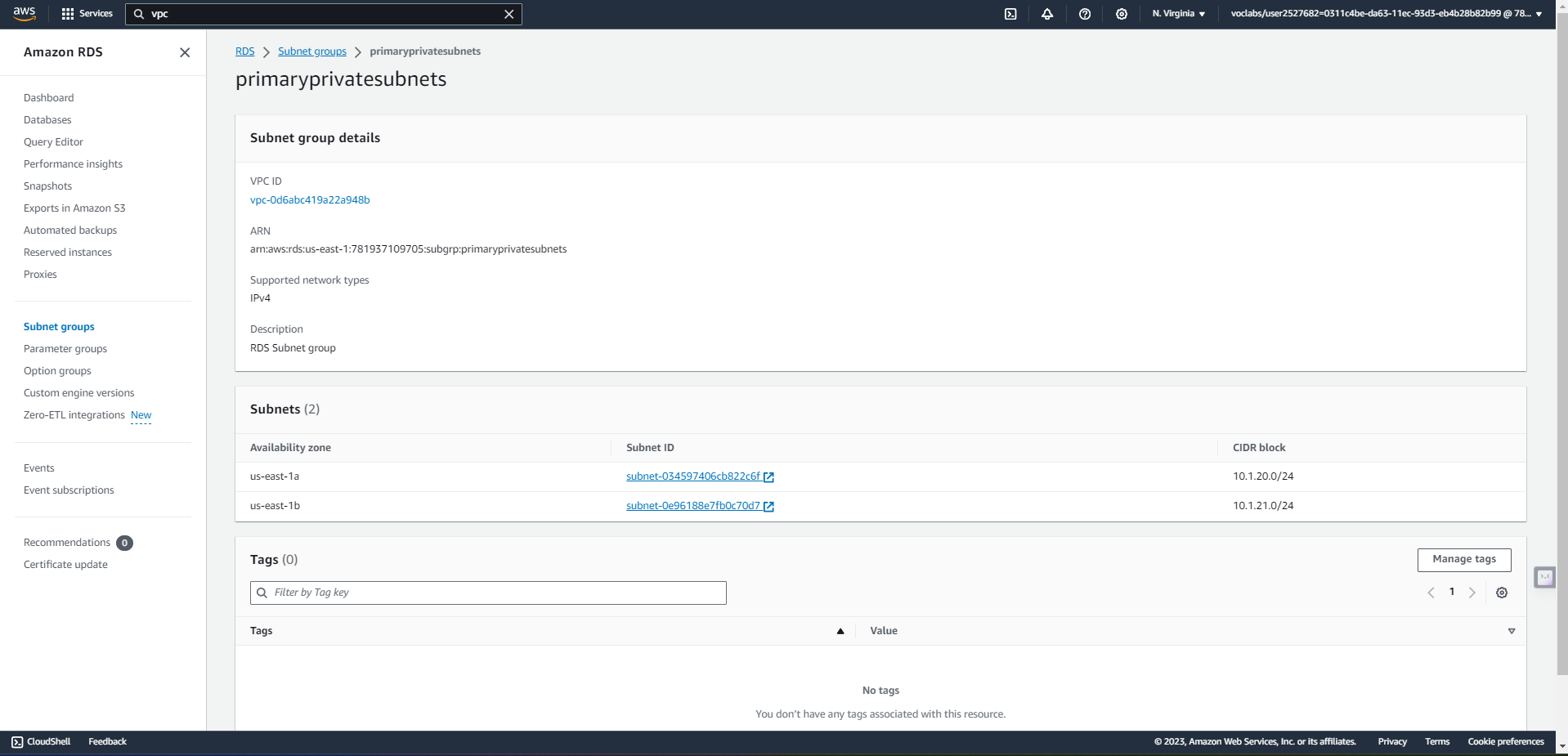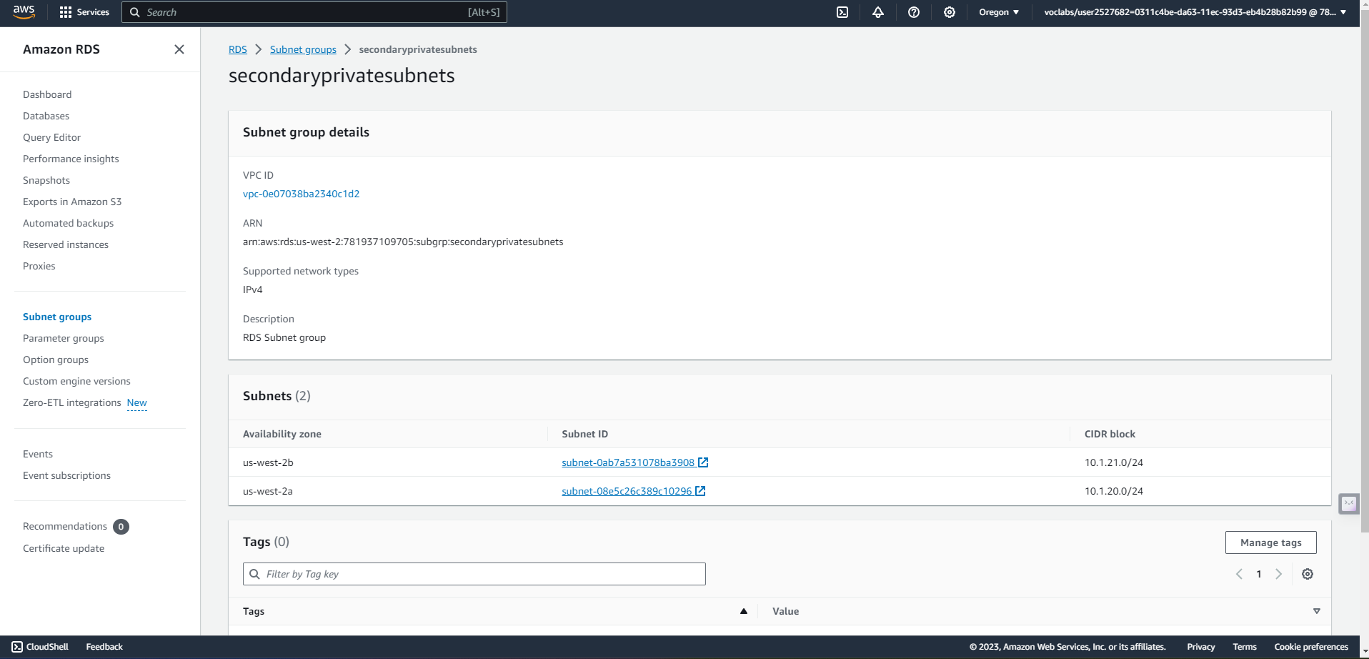 - Establish a new RDS Subnet group in both the primary and secondary regions utilizing private subnets.