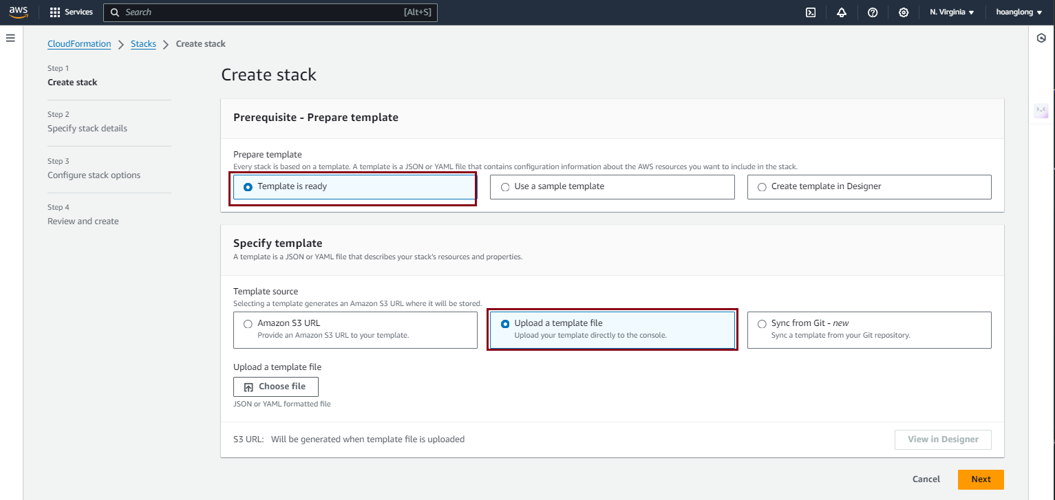 To build a VPC from the YAML file, follow the steps. Here are the steps to follow in the AWS console.